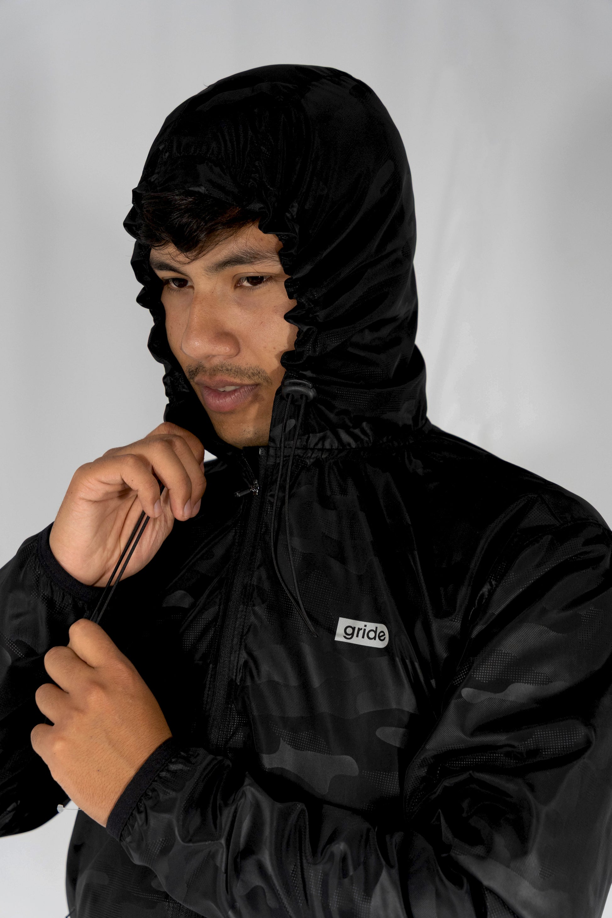 Rompevientos deportivo en camuflaje negro con gorro integrado, diseñado para máximo rendimiento en tus entrenamientos. Fabricado con materiales de alta calidad que ofrecen protección contra el viento y la humedad. Cuenta con cierre de doble dirección que te permite ajustarlo según tus necesidades, brindando comodidad y versatilidad. El gorro incorporado proporciona protección adicional en días fríos. Ideal para corredores, ciclistas y atletas que buscan una prenda funcional y con estilo.